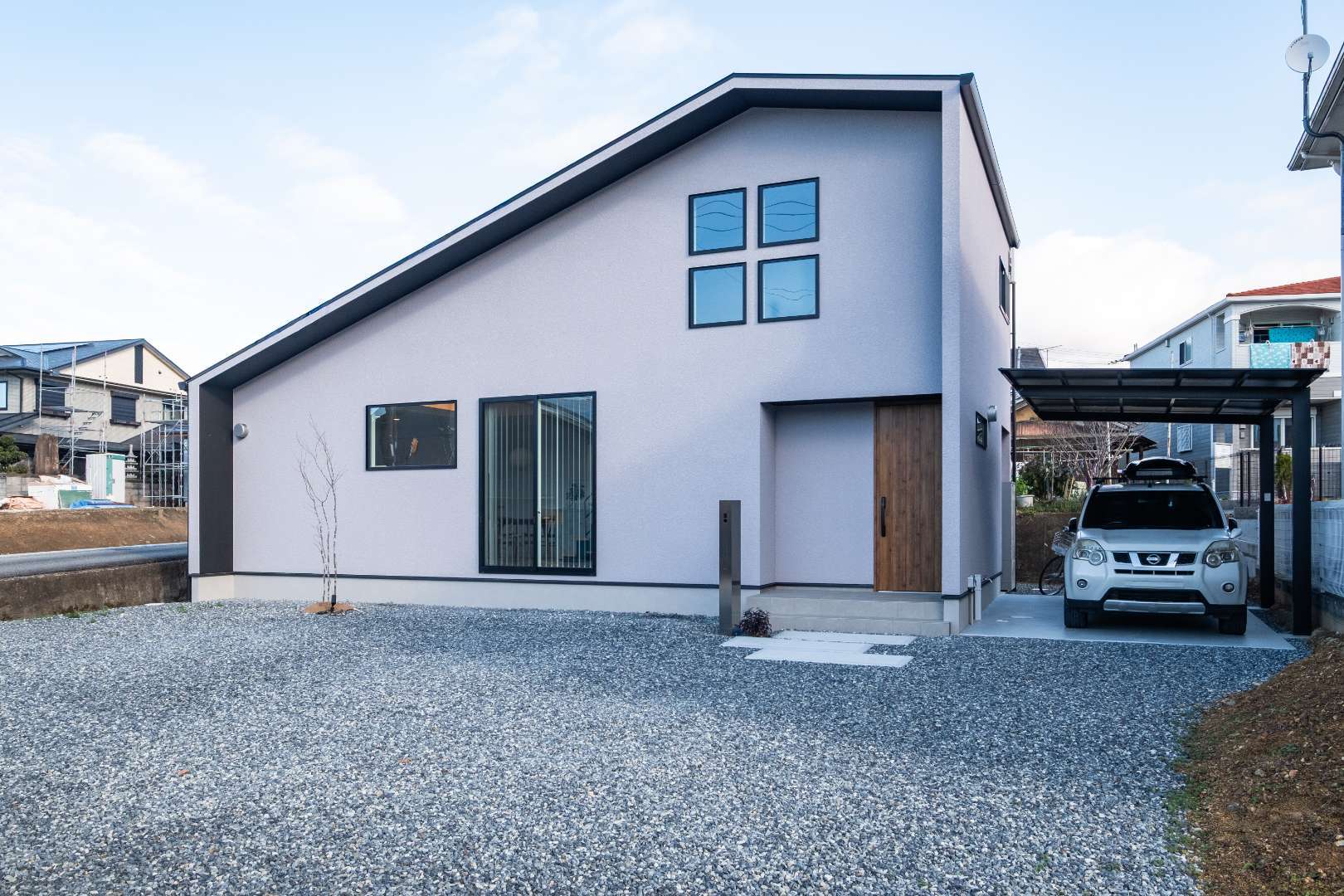 白やグレー、黒など落ち着いた色に、凹凸の少ないスッとした形。余計なものを足さない外観が選ばれる理由は、シンプルで古く見えにくい、メンテナンスが楽、街並みに馴染む。つまりメリットだらけ。お引き渡し後に『この外観にしてよかった』とよく言われる理由もここにあります✨