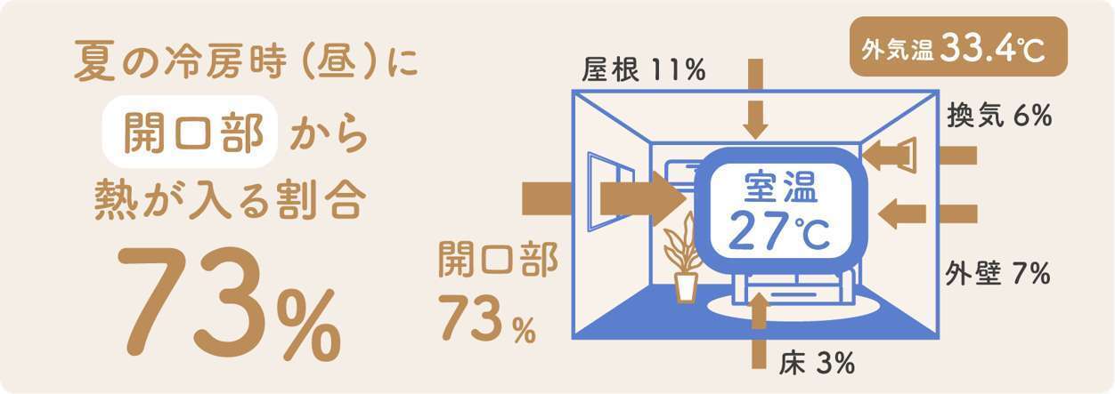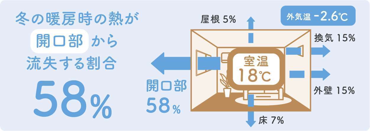 窓から、冬の温かさは約6割逃げ、夏の暑さは約7割入ってきます。