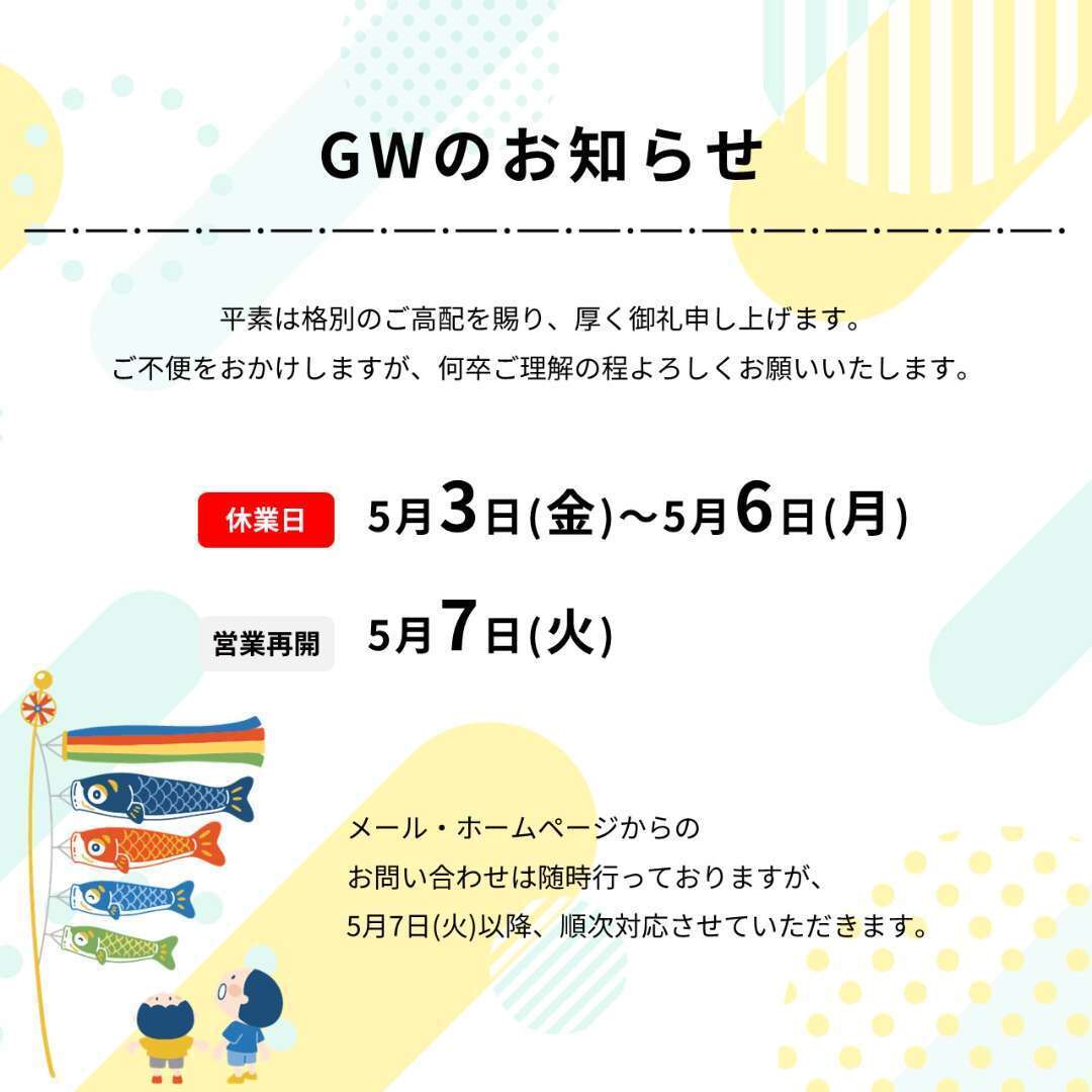 ゴールデンウィークの休業日を下記の通りお知らせいたします。