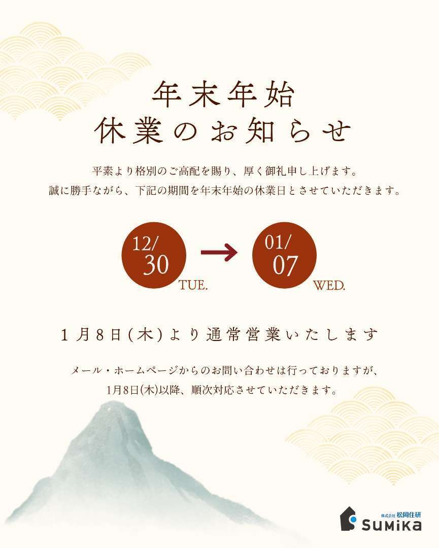 年末年始の休業日を下記の通りお知らせいたします。