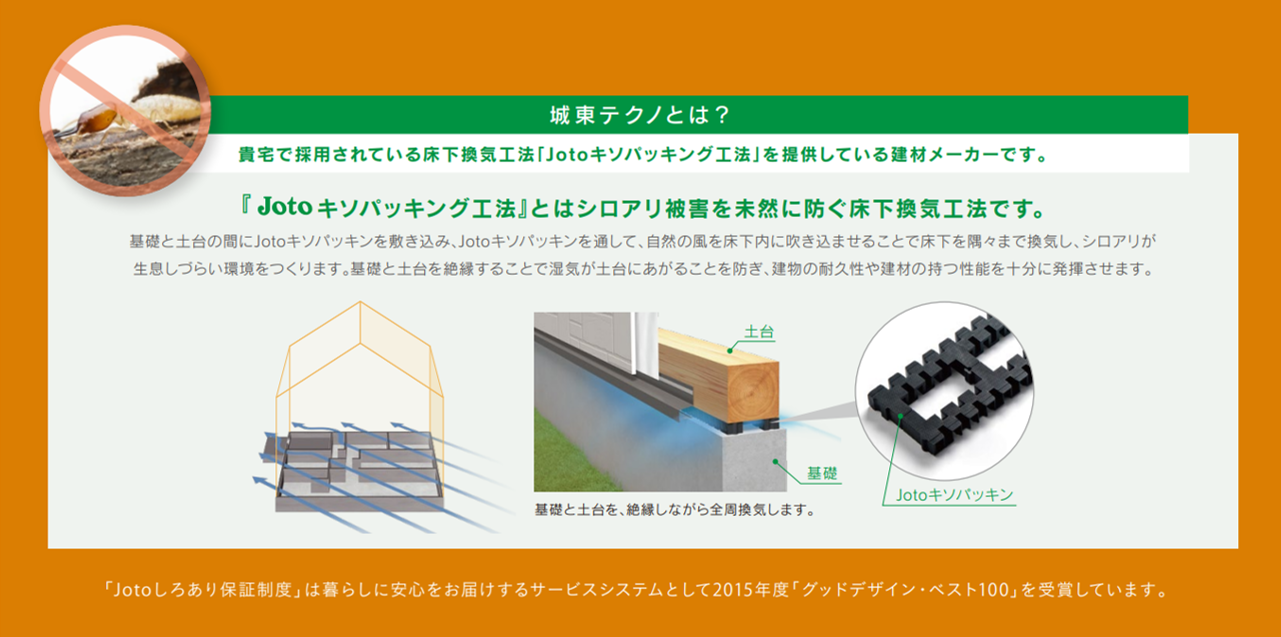 薬剤を使用せず、自然の風を利用する『キソパッキング工法』を採用しております。