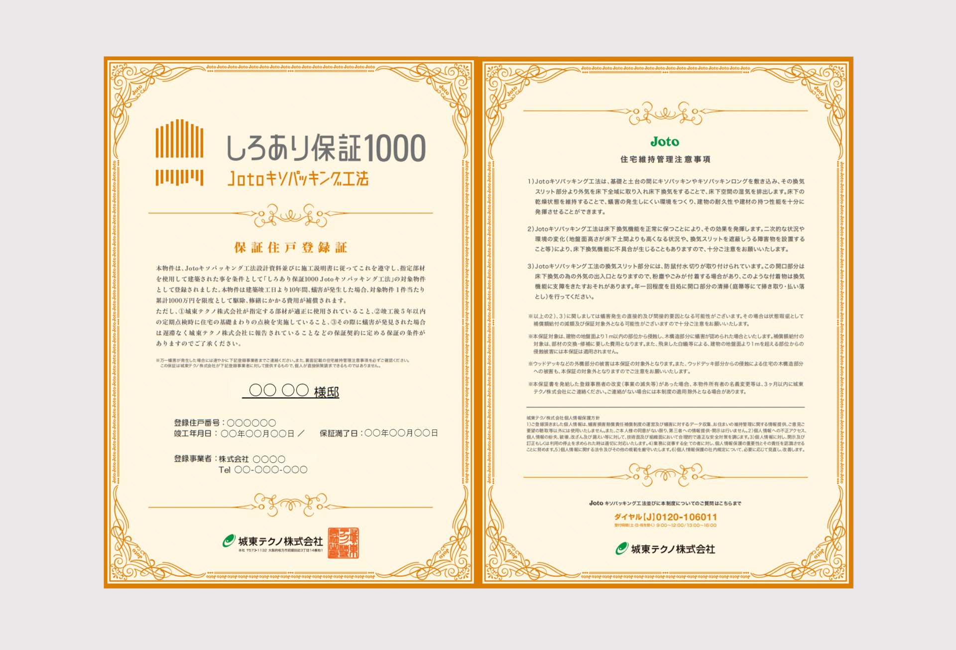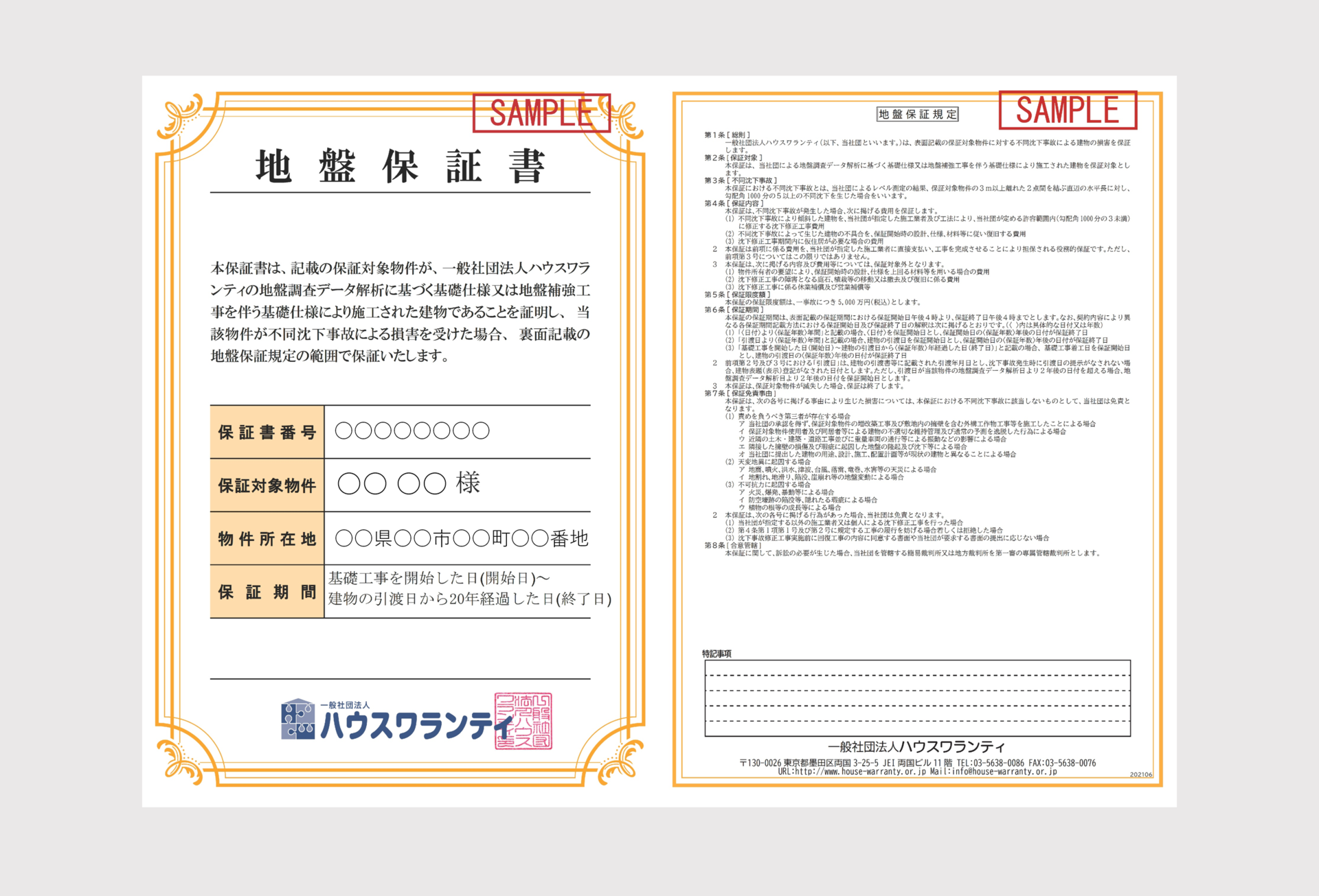 お引き渡し後、20年以内に不同沈下など地盤に起因する建物の損壊が生じた場合に、原状回復を保証をするサービスです。